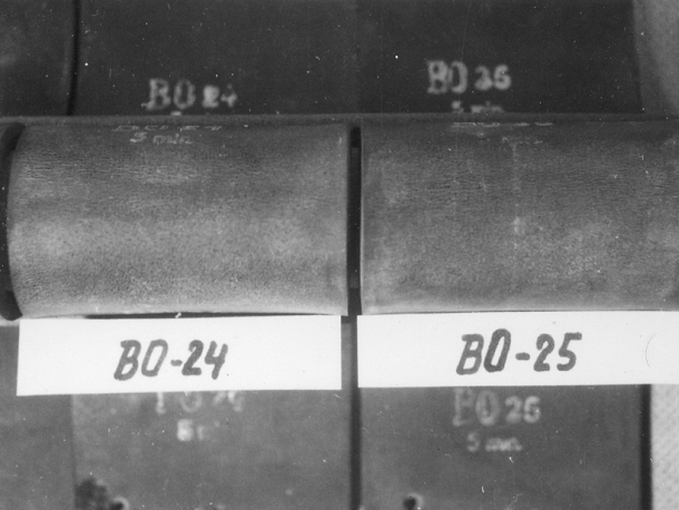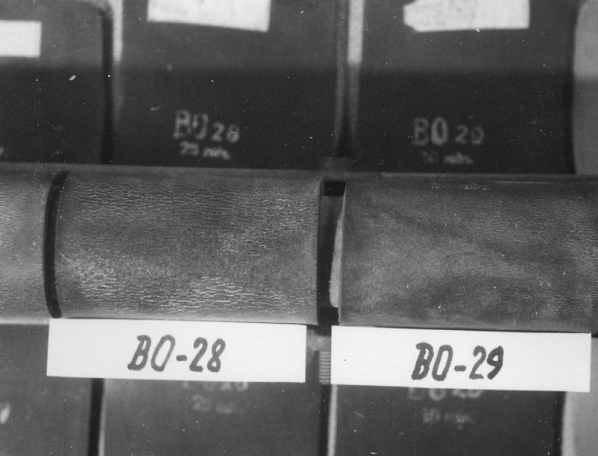 Ukázka ozonového praskání pryží exponovaných na atmosférické stanici v Nigérii: