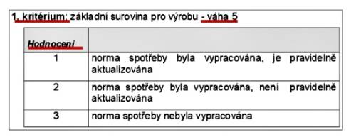 Každému kriteriu se přiřadí hodnocení Hk vyjadřující skutečný stav v podniku.
