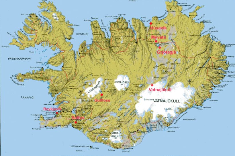 8.den: Geotemální puklina Grjótagjá, lávové útvary Dimmoburgir („Černé hrady“), výstup na Vindbelgjárfjall s leteckým výhledem. Pokračování v okruhu severem ostrova: vodopád Godafoss, největší přístav Akureyri. Nocleh na severozápadě ostrova u Hrútafjordu