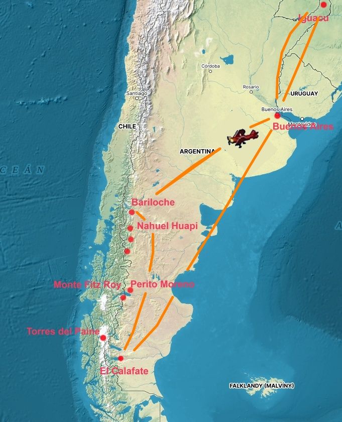 8.11.2014 Sraz na ruzynskem letisti, odlet do B. Aires, prelet do oblasti jezer, do Bariloche. Seznamovací okruh, výstup na vyhlídku, nocleh Bariloche (AR)