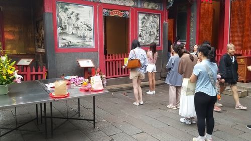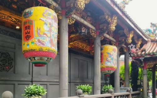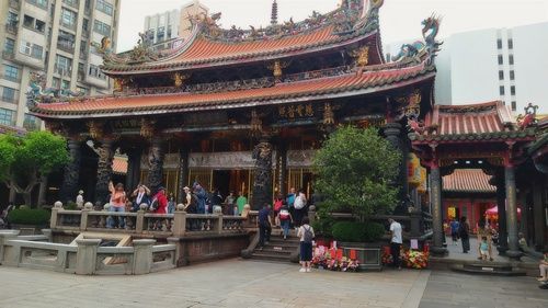 První zastávku jsme měli v Longshan tempel. Název znamená „ Chrám Dračí hory “. Pochází od stejnojmenného chrámu v provincii Fujian v Číně. Je to nejznámějším chrámem ve Taipei a je to aktivní místo uctívání, vždy sršící energií a oddaností. V areálu chrámu se konají denně tři obřady zpívání. V ulicích kolem chrámu rozdávají věštci rady, prodejci vystavují řadu bylinek a léků.