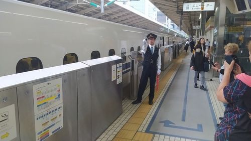 Po prohlídce pospícháme na metro, které má nás dovézt na nádraží, odkud jezdi jen šinkanzeny. V roce 2014 oslavily tyto rychlovlaky kulatých 50 let existence. Pohybují se po dvou hlavních japonských ostrovech Honšú (Tokio, Ósaka, Hirošima aj.) a Kjúšú (Fukuoka, Nagasaki). Nepatří už k nejrychlejším vlakům světa, ale jízda v nich je zážitek. Vlak má 16 vagonů a od jednoho konce na druhý se nedá dohlédnout. Na nástupišti se musíte postavit do fronty v místě, kde budou dveře vašeho vagonu. Na obou koncích má rychlovlak stejnou řídící jednotku. Povolená rychlost je 320 km/h. Vzdálenost 420 km ujel náš šinkanzen za hodinu a půl.