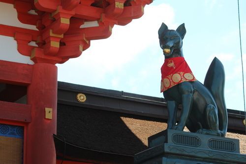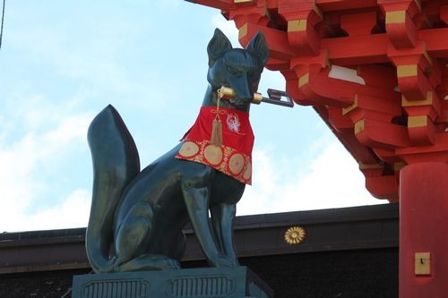 Šintoistickým uctíváným symbolem je liška, na které se Božstvo Inari sneslo na zem. Božstvo bývá zobrazováno jako žena nebo muž. Proto před každým chrámem hlídají dvě lišky a mají dary v hubě.