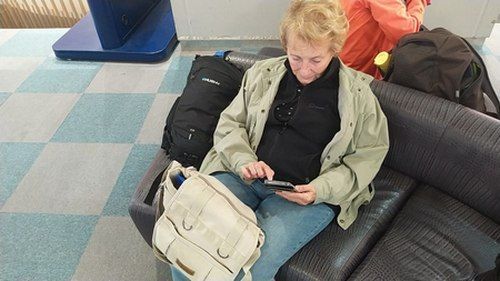 Řidič, který nás pak vezl na letiště do Vídně se snažil vyhnout zácpě na dálnici. A tak se vydal vesnicemi kolem Nových Mlýnů. Jeho snaha ale byla marná. Asi dvacet kilometrů před Vídní jsme uvízli ve veliké zácpě a jeli krokem až k letišti. Tam na nás čekala průvodkyně. Rychle jsme se odbavili a bez dlouhého čekání proběhl boarding.