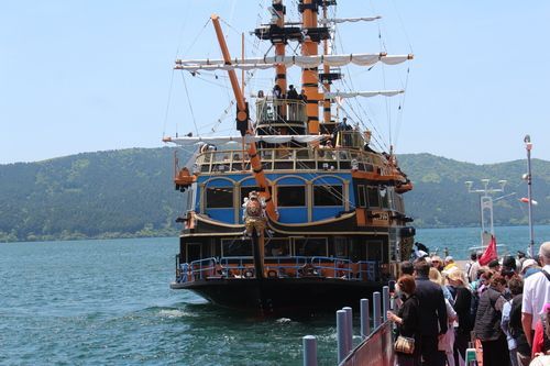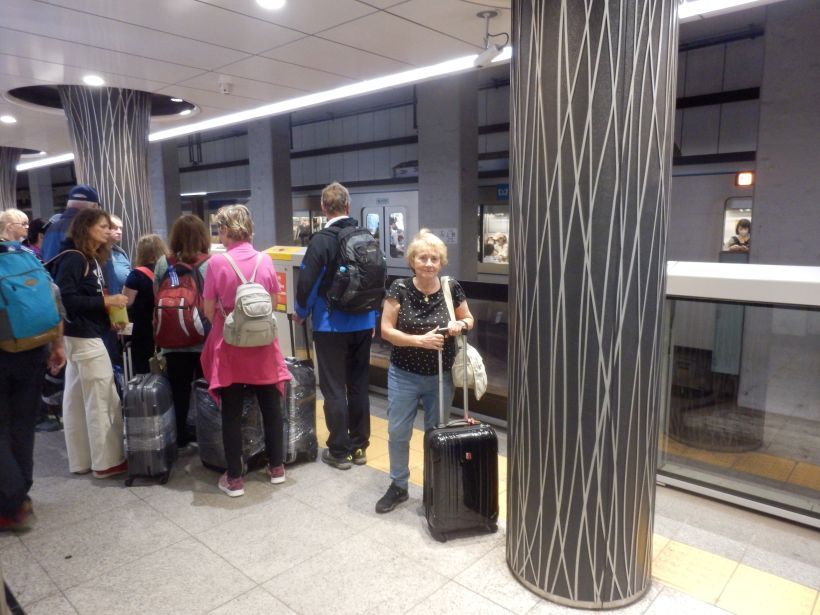 V osm hodin jsme se vydali na metro a tímto dopravním prostředkem po několika přestupech až na nádraží, kam měl přijet místenkový vlak z Onasi-Hakone. Když pasažéři z vlaku vystoupili, tak naběhla skupina uklízečů, aby zlikvidovala případné odpadky. Je zajímavé, že v Japonsku nejsou nikde odpadkové koše, na druhé stráně se ale nikde odpadky nepovalují. Když bylo uklizeno, tak vlakový systém otočil všechny sedadla do směru Onasi-Hakone a my mohli nastoupit. Cesta trvala dvě hodiny. Po dojezdu jsme přestoupili do autobusu, který nás zavezl k jezeru Aši