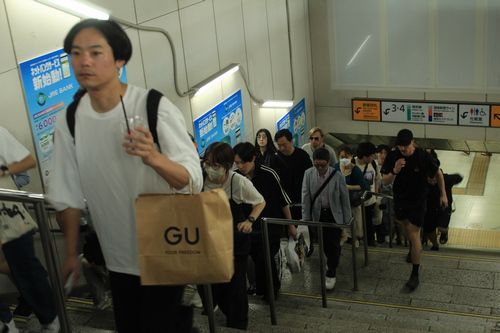 Tak to vypadá, když se cestující vyhrnou ze stanice na ulici.