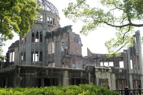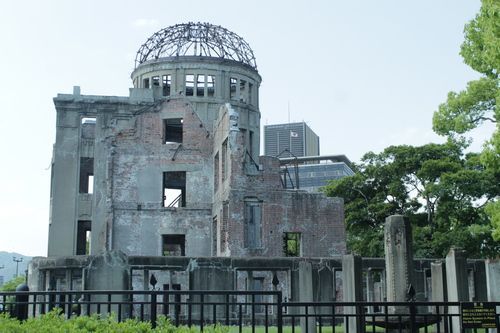Po příjezdu do Hirošimy jsme přesedlali z našeho pohledu na starou tramvaj, která nás dovezla k místu, kde stojí trosky jedné z mála budov, které přestály výbuch atomové bomby. Během poslední fáze druhé světové války v Pacifiku shodily Spojené státy americké 6. a 9. srpna 1945 dvě atomové bomby na japonská města Hirošimu a Nagasaki.