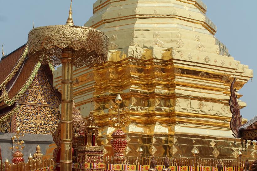 Pátý den putování po severu Thajska jsme zahájili v Národního parku Doi Inthanon se stejnojmenným nejvyšším vrcholem Thajska (2.565 m n. m.). Hlavní atrakcí byla prohlídka dvou stup (věží) postavených na počest výročí 60 narozenin krále a královny. Areál je v nádherné květinové zahradě francouzského stylu.