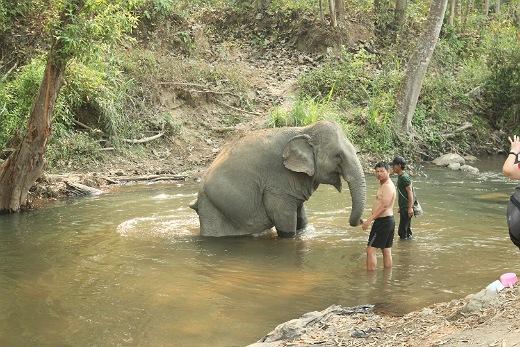 Čtvrtý den v Thajsku jsme zahájili návštěvou tržnice na kraji města. Odtud jsme pokračovali minibusem do sloního kempu v oblasti Mae Wang. Zde byla plánovaná projížďka na slonech. Ta se z důvodu vyhlášky zaměřené na ochranu slonů ale nekonala. Místo toho jsme slony jen krmili a koupali.