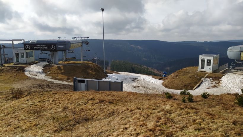 Skiareál Klínovec (1214 nmm) je největší a nejmodernější lyžařské středisko Krušných hor (no moc vábně to tam nevypadá). Na Klínovci najdete 4 sedačkové lanovky a 6 lyžařských vleků. K dispozici je U rampa i snowpark s mnoha skoky a překážkami a také 30 km upravovaných běžeckých tratí. Lyžařské tratě všech druhů obtížnosti jsou pravidelně upravovány. Středisko nabízí sněhovou garanci modernizovaným systémem umělého zasněžování, které je plně automatizováno. I když je obecně na svazích sněhu málo, ta na sjezdovkách byl a rolby povrch upravovaly. Kudy z nudy