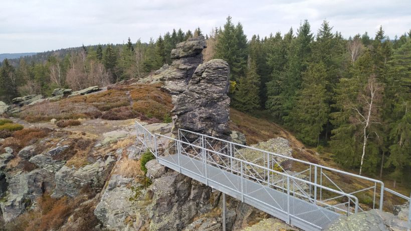 Když se před vámi tento skalní útvar vyloupne, první co vás napadne, že je to hrad. Zvětráváním skal stěny totiž rozpukaly a vytvořily hradby a věže, což doopravdy tvarem připomíná zříceninu hradu. Na nejvýraznějším skalním bloku (773,6 m) je umístěna půlkruhová vyhlídková plošina, ze které za dobrého počasí vidíte až do Německa. Jako celek je Vysoký kámen chráněná přírodní památka.