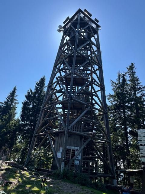 Na vrcholu je hotel, ale ten byl rovněž zavřený. Pití se ale dalo koupit v automatu, tak jsem zakoupi pivo. Než jsme se vydali na zpáteční cestu, tak jsme ještě "vyšplhali" na rozhlednu. Bylo to jen pár schodů a vstupné bylo na kartu.