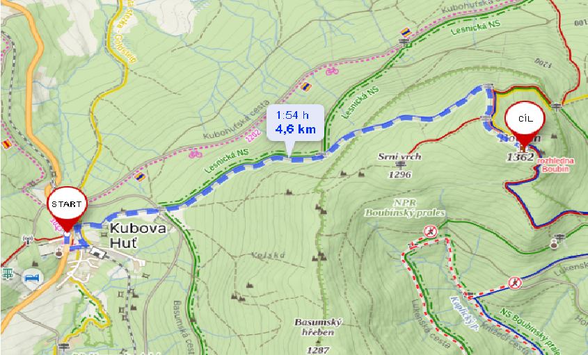 V 9:30 odjezd autem do Kubovy Hutě (20 min) a odtud pěšky na Boubín.