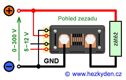 - Je-li napájen externího zdroje 5–12 V DC, může měřit napětí už od nuly.