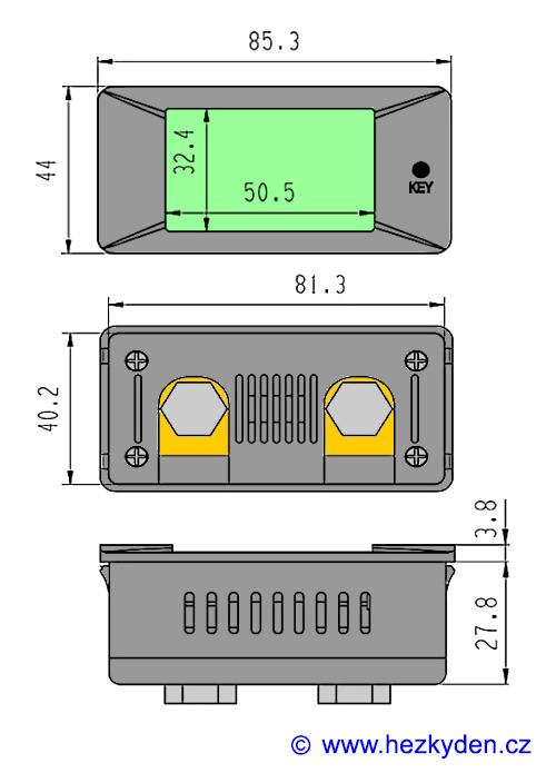 Panelový multifunkční wattmetr LCD 300V 50/100/200/300A DC – rozměry