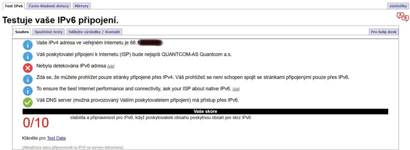 Otestujte své připojení (Google „IPv6 test“ a spusťte jeden za pět sekund naprázdno). Zkontrolujte, zda to váš ISP podporuje. Pokud provozujete web, ujistěte se, že je dostupný přes IPv6. Poslední věc, kterou chcete, je být ten jeden zastaralý web, ke kterému uživatelé nemají přístup, protože jste nebyli připraveni na budoucnost.